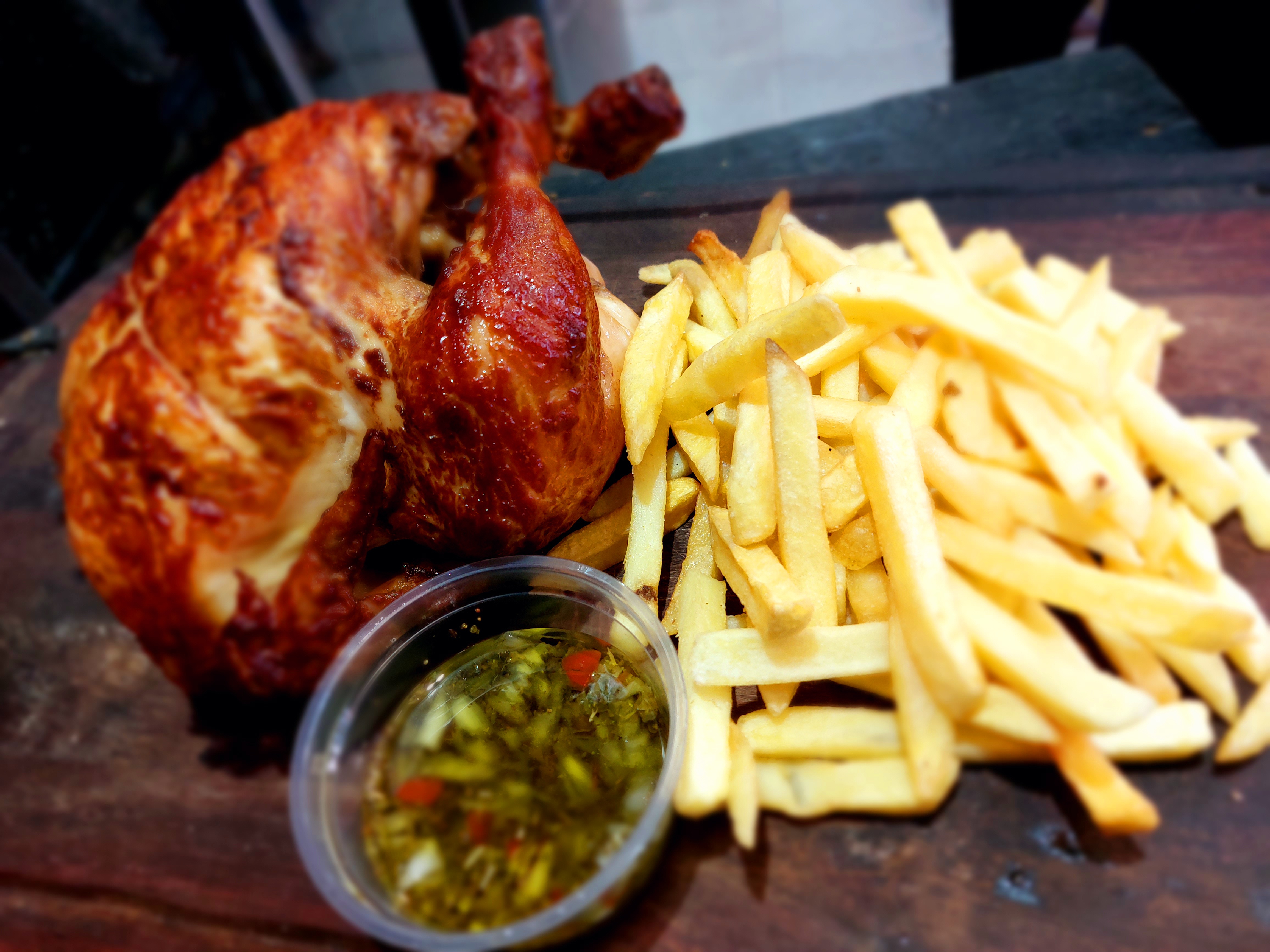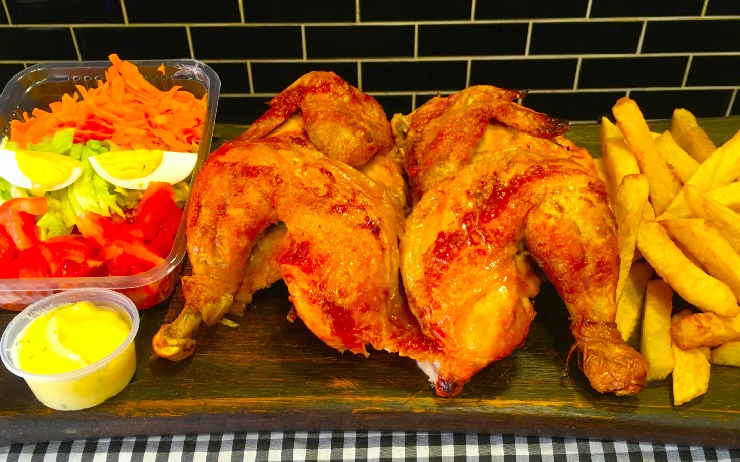 Pollo al spiedo entero + 1 porción de papas fritas y 1 de ensalada mixta + 1 Coca Cola 1.5 lts
