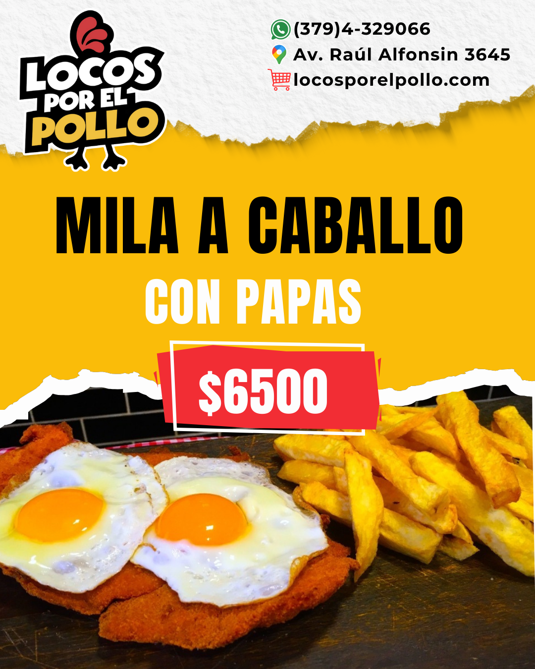 Milanesa de pollo + 2 huevos fritos + papas r+rústicas